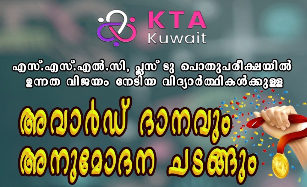 കുവൈറ്റ് സിറ്റി: എസ്.എസ്.എൽ.സി , പ്ലസ് ടു പൊതുപരീക്ഷകളിൽ വിജയിച്ച കൊയിലാണ്ടി താലൂക് അസോസിയേഷൻ കുവൈറ്റ് അംഗങ്ങളുടെ മക്കൾക്കുള്ള അവാർഡ് വിതരണവും അനുമോദന ചടങ്ങും ജൂൺ 28 ശനിയാഴ്ച കൊയിലാണ്ടി തക്കാരാ റെസ്റ്റാറന്റ് ഹാളിൽ വച്ച് നടക്കും.